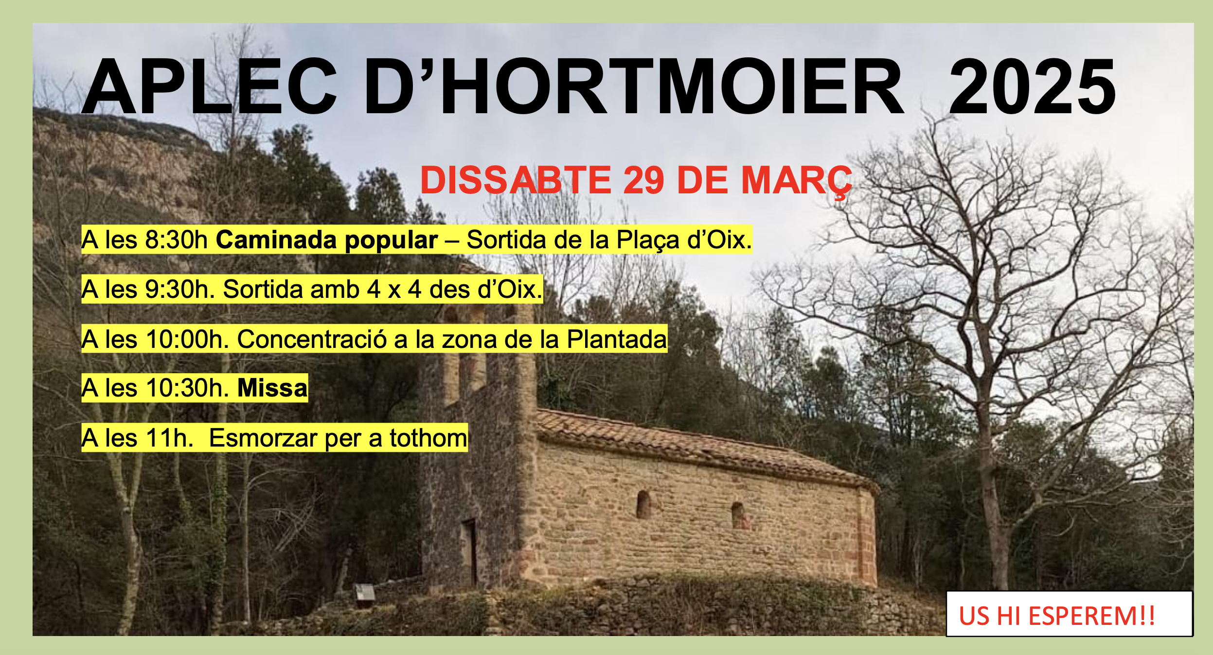 - A les 8:30h Caminada popular.- Sortida de la Plaça d’Oix.